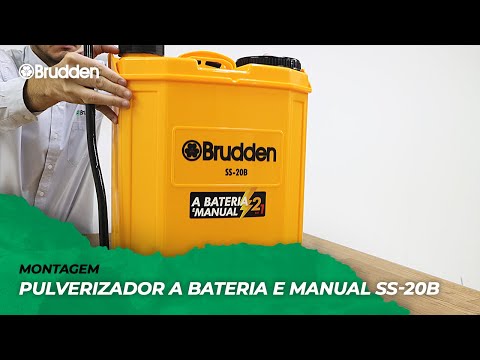 O Pulverizador Brudden modelo SS-20B, 2 em 1, possui acionamento manual (através da alavanca) e elétrico (a bateria). O Pulverizador Brudden modelo SS-20B mixer, 3 em 1, possui acionamento manual (através da alavanca) e elétrico (a bateria), conta com um sistema de mistura de calda do tanque. O Pulverizador Brudden modelo SS-12B, possui acionamento elétrico (a bateria) SS-20B SS-20B MIXER SS-12B Peso líquido máximo (Vazio) 6,1 kg 6,24 4,57 kg Capacidade do tanque 20 litros 12 litros Bateria 12v - 8ah Autonomia Aproximadamente 10 horas* Bomba elétrica Diafragma Vazão Máxima 3,1 l/min. Pressão de trabalho 2 - 4,5 bar Carregador da bateria Bivolt 127v-220v - 1.0a Tempo de recarga Aproximadamente 8 horas Autonomia: A autonomia de trabalho está relacionada a carga da bateria ao iniciar a pulverização, a pressão de trabalho utilizada e o tipo de bico e vazão escolhido. O uso do misturador no SS-20B Mixer aumenta o consumo, diminuindo assim a autonomia em relação aos outros modelos. O sistema de mistura de calda somente funcionará se houver carga na bateria. Tempo de recarga da bateria: O tempo de recarga da bateria é de aproximadamente 8 horas e varia de acordo com a carga no momento do início do recarregamento.